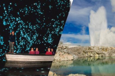 オークランドからバスで約2時間半のところにあるワイトモ洞窟では、土ボタルを見ることが出来ます。洞窟の中で光る土ボタルはまるで星空のようで神秘的。ロトルア観光またはホビット村観光とセットで訪れるツアーがお勧めです。