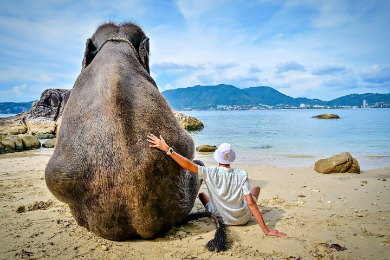 とっておきの体験ができる場所があります!プーケットの白砂ビーチに暮らす象