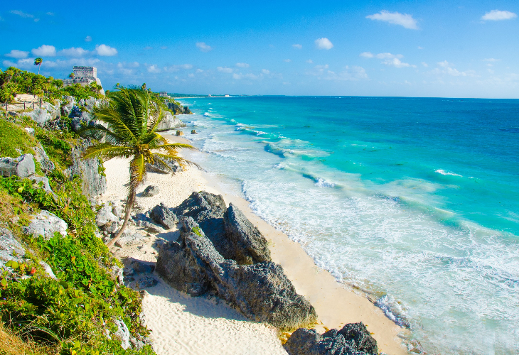 カリブ海沿いの岩壁にそびえたつマヤの神殿は、遺跡とカリブ海を一望できる大変美しい遺跡です。